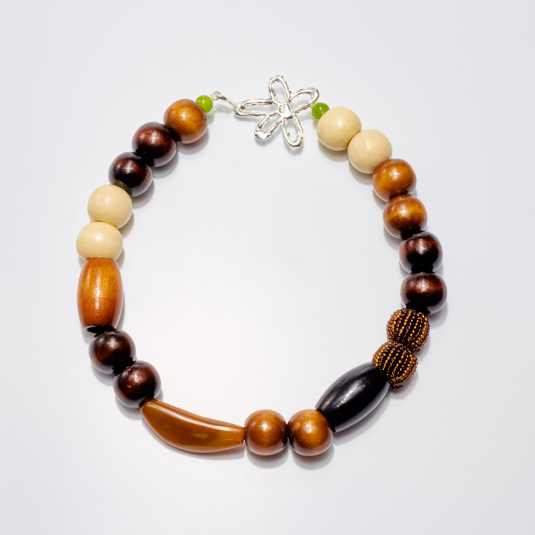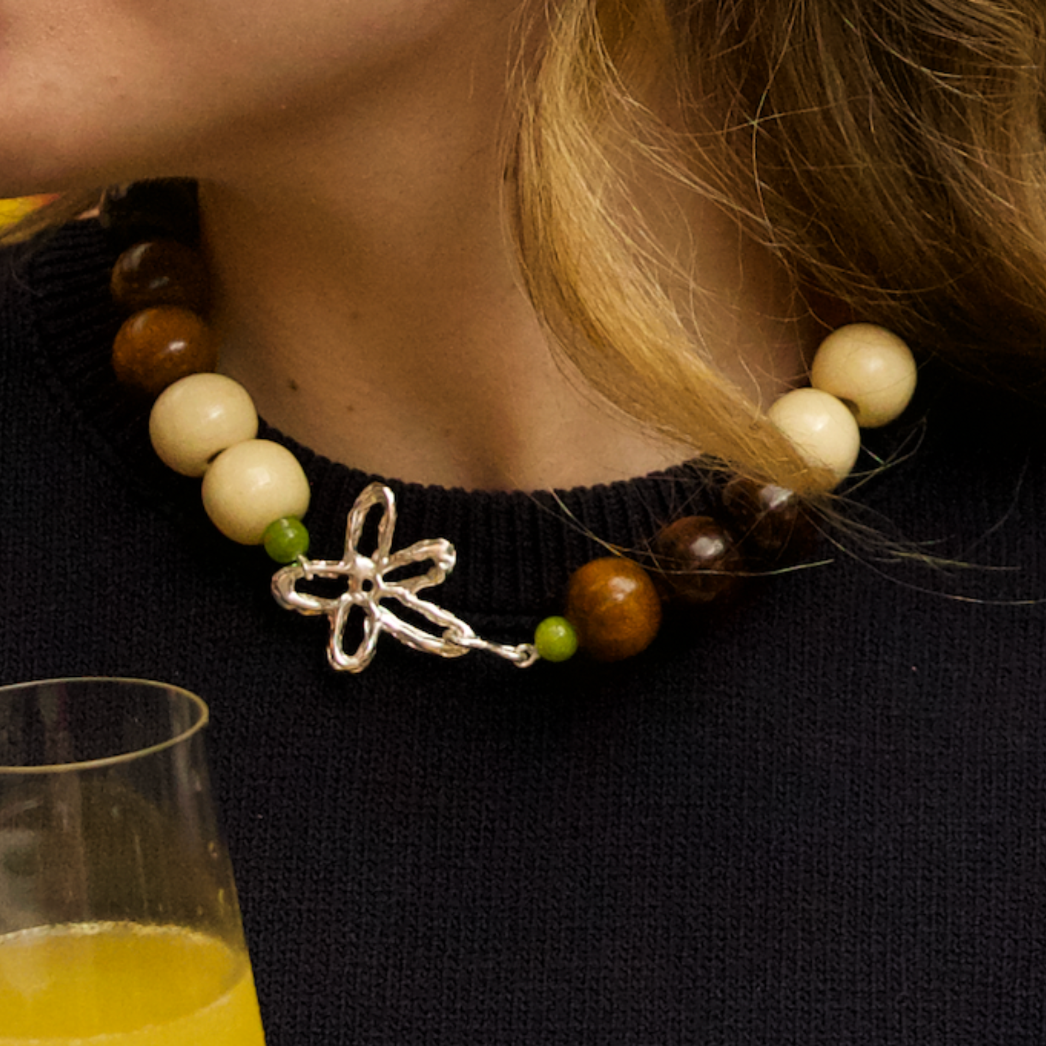 La Torta de Chocolate pertenece al universo más sofisticado de Vold. Como una receta perfecta, mezclamos ingredientes especiales: piedras naturales, madera, cristal y piezas tejidas a mano. El resultado es un collar con textura, contraste y mucha personalidad.